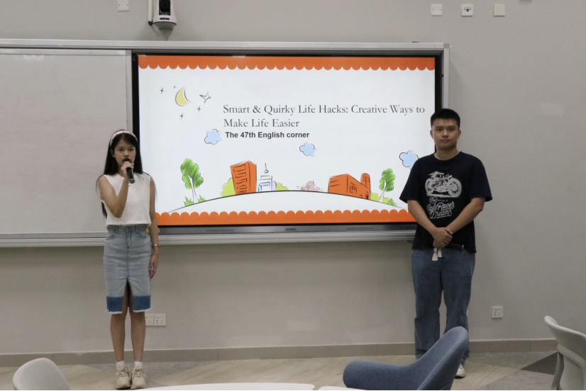 2025年9月26日星期五晚,外国语学院英语创新实践中心第四十七期英语角活动在C5公共教学楼508教室成功举办。本期的活动主题为“Smart & Quirky Life Hacks: Creative Ways to Make Life Easier.”