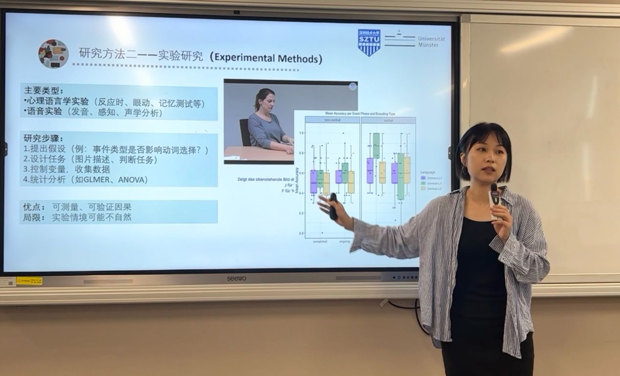 2025年10月11日下午,外国语学院在B2-1118举办了主题为“话到嘴边想不起?你的“语言操作系统”又出BUG? —走进语言学:从有趣现象到硬核科学研究方法”的讲座。本次讲座特邀德国明斯特大学德语系讲师赵霏雪老师主讲,外国语学院刘思予博士主持,吸引了老师和同学们积极参与。