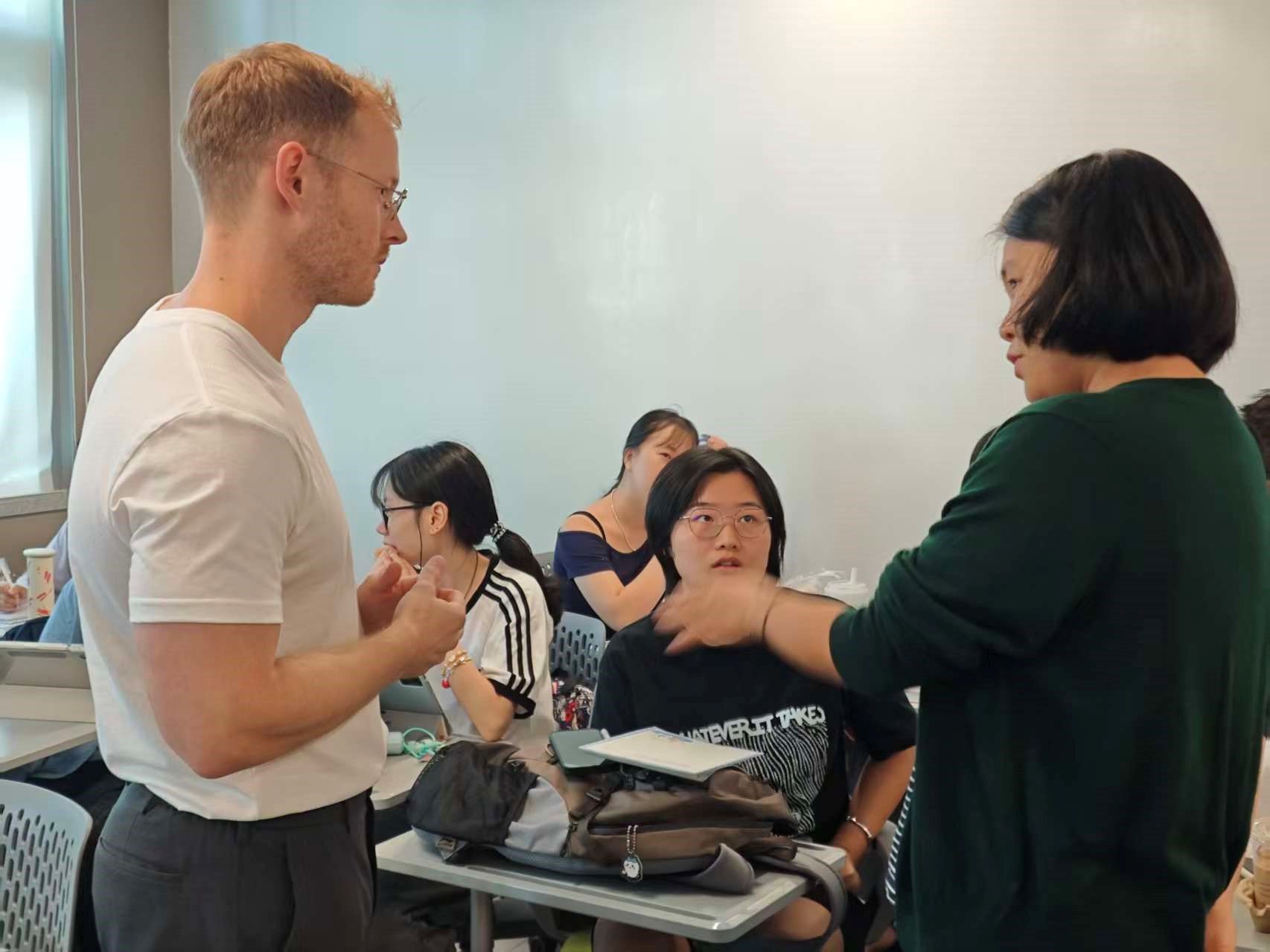 本次讲座特邀德国明斯特大学德语系研究员Dominic Hendricks主讲,外国语学院刘思予博士主持,吸引了同学们积极参加。Dominic Hendricks目前任职于德国科学基金会资助的重点项目“人称指称实践:人称、不定及指示代词的实践应用研究”,他的核心研究领域涵盖互动中的语法、会话分析及互动语言学。