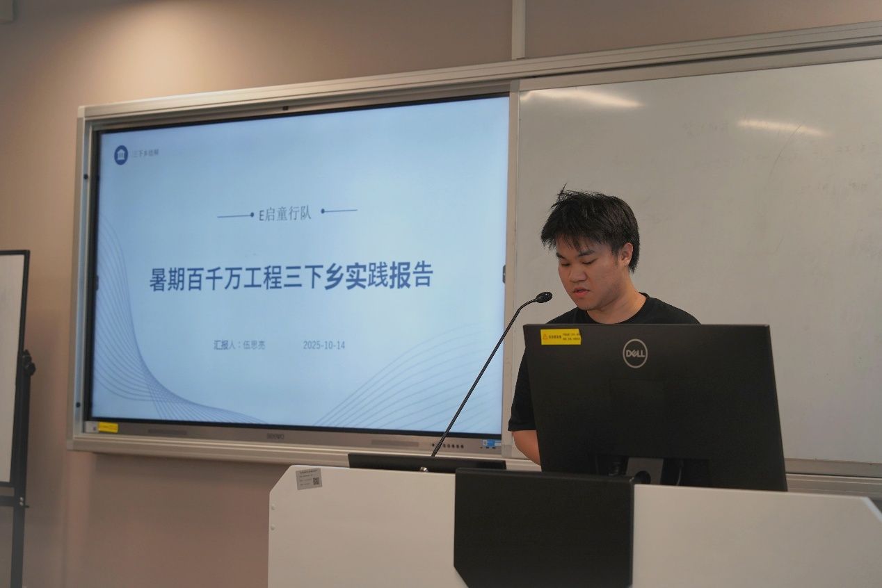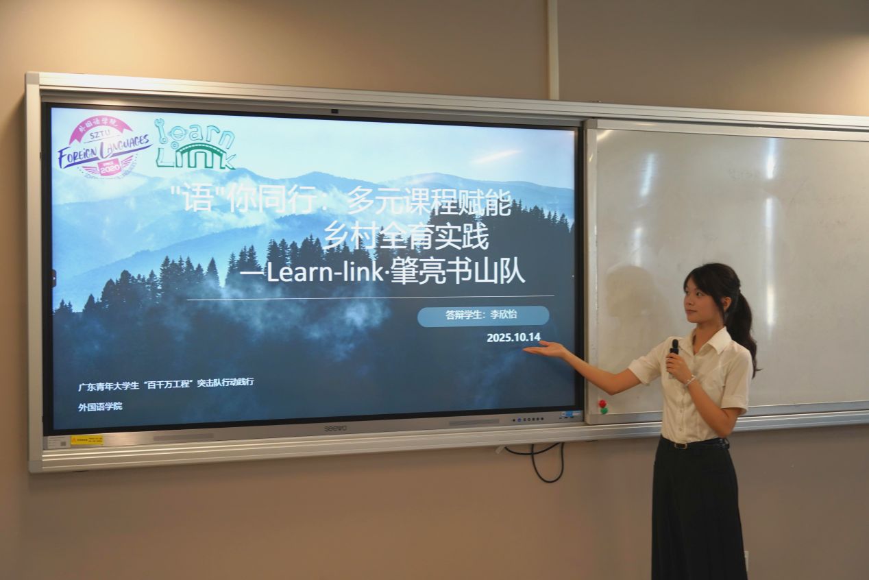 2025年10月14日下午,深圳技术大学外国语学院在B2-1117教室举办了2025年暑期“三下乡”社会实践暨“百千万工程”突击队行动结项答辩会。马克思主义学院江雪铭老师、外国语学院曹筱艺老师与纪雪洁老师担任评委。各实践团队通过PPT展示、视频播放、现场讲述等形式,全面呈现了暑期实践的丰硕成果与深刻感悟。