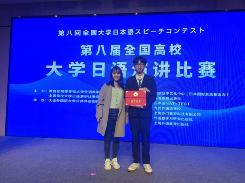 陈梓乐同学作为一名非外语专业学生,通过大学日语课程的系统学习,成功登上全国日语演讲比赛的舞台,展现了我校外国语学院大学日语教学的扎实成效。他在赛后表示:“能够在这个舞台上与全国各高校的优秀选手交流,我最想感谢的是外国语学院的老师们。从发音细节的纠正,到演讲表达的逐句打磨,正是她们耐心的陪伴和持续的鼓励,让我这份非专业的热爱有了站在全国赛场的底气。这次比赛让我收获的不仅是日语能力的提升,更让我深刻体会到,真正的进步蕴藏在每一次细致修正与反复打磨的坚持之中——这种脚踏实地的成长过程,远比结果更为珍贵。”