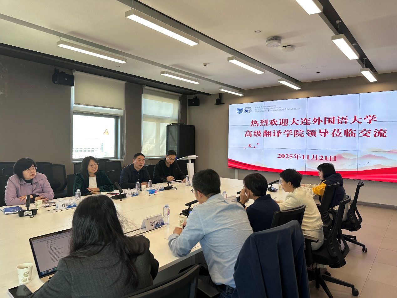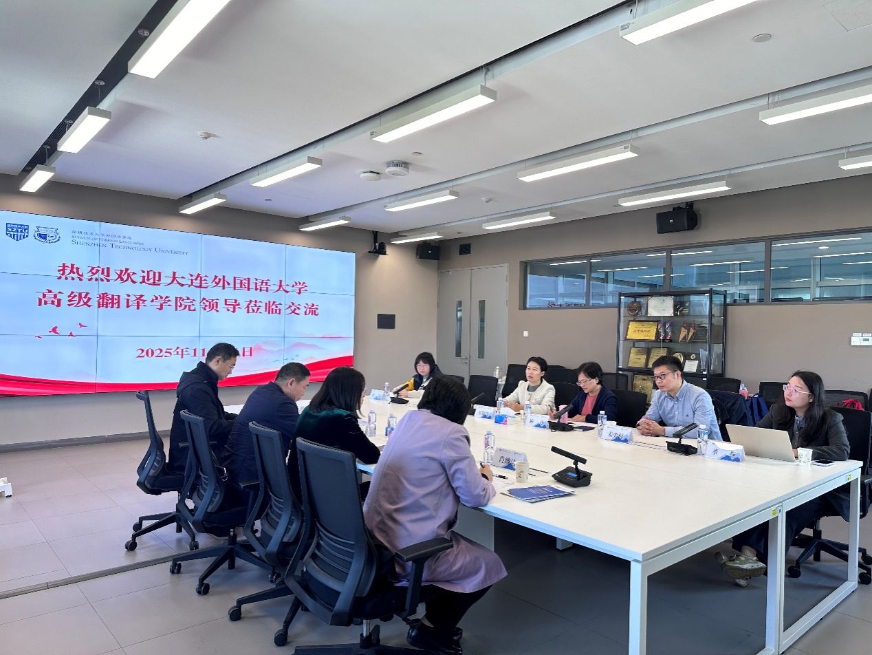 2025年11月21日上午,大连外国语大学高级翻译学院党总支书记、副院长姜文龙一行莅临深圳技术大学外国语学院,开展调研交流活动。双方在B2-1220会议室举行座谈会,围绕翻译专业研究生教育、师资建设、招生与人才培养、校企合作及基层党建等议题进行了深入交流和探讨。马院与外国语学院联合党总支书记任聪慧、外国语学院院长钟玲及部分教师代表出席了座谈会。
