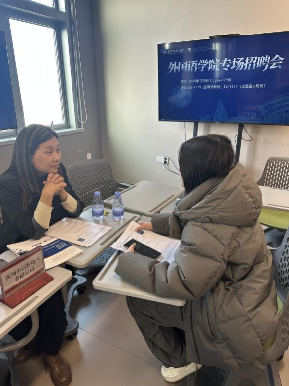 为全面拓展2026届毕业生就业路径,精准把握考研后促就业的宝贵窗口期,切实助力毕业生实现更充分、更高质量就业,外国语学院于2026年1月6日成功举办了2026届毕业生专场招聘会。本次招聘会吸引了包括深圳市华美兴泰科技股份有限公司在内的多家优质用人单位参会,涵盖科技、生物、商务、信息技术等前沿领域。