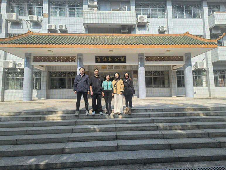 钟玲院长一行与饶平县第二中学党委书记吴平波、办公室主任林仕俊和高三年级主任余明智等就县域中学升学指导需求展开交流,提出后续将通过系列讲座等活动实现合作共赢。