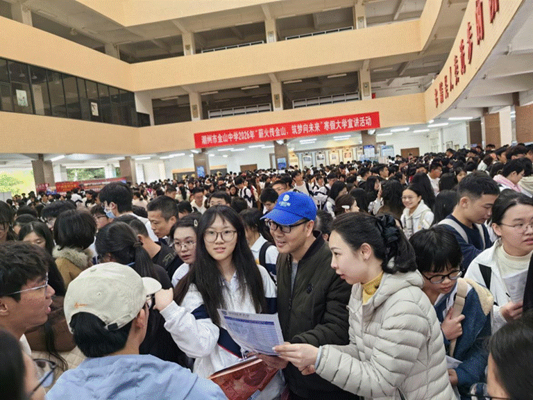 团队与潮州金山中学政教处张洋副主任就两校持续合作展开研讨。随后,钟玲院长面向高三学生和家长进行专场宣讲。活动尾声,团队与深技大在校生一同参与金山中学寒假大学宣讲活动,通过摆摊咨询为考生提供“一对一”答疑服务,现场发放宣传资料超1000份。