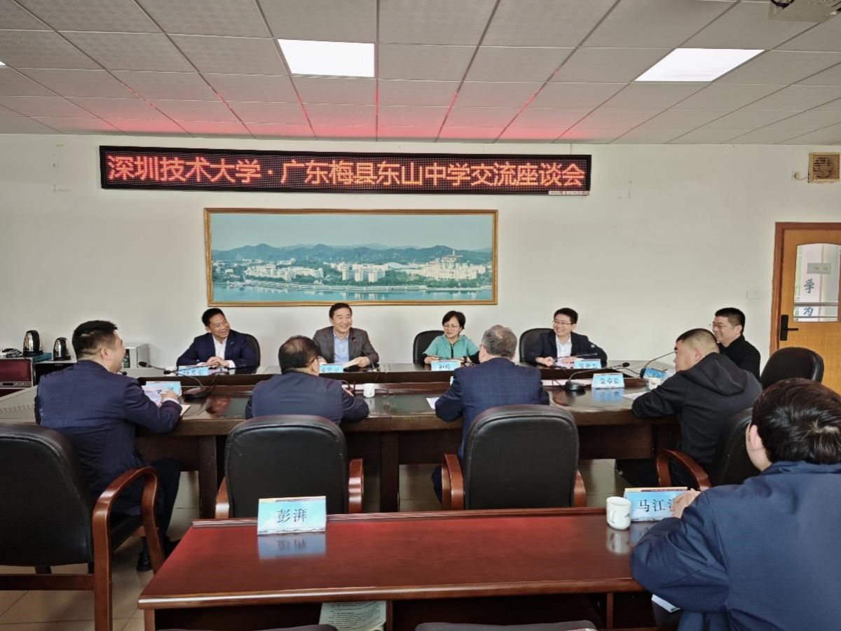 副校长邓元龙率队与梅县东山中学党委书记郭思健、校长林敏、教务科科长孔鑫辉、高三教学负责人周东贤和高三德育负责人翁卓嘉等进行座谈。邓元龙副校长详细介绍了学校作为密切对接国家战略需求和深圳20+8产业需求的高水平应用研究型大学的办学特色,坚持“因学术而应用,为应用而学术”;外国语学院院长钟玲结合学科特色,重点解读了外国语学院“外语+”复合型人才培养路径;计划财务部主任杨光东介绍了学校在校企合作实践育人等方面的情况;创意设计学院党总支副书记张贵君分享了东山中学毕业生在深技大的升学就业发展情况。当晚,副校长邓元龙教授面向高三学生开展招生宣讲,现场座无虚席,反响热烈,宣讲结束后,很多学生依旧围绕感兴趣的话题进一步咨询,久久不愿离开。