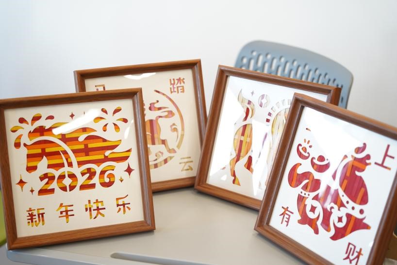 竹编画DIY:经纬交织蕴匠心,竹丝勾勒新春景——大家以竹丝为经纬,底板为布面,精心编织出骏马奔腾、春和景明的新春花卷,将马年的昂扬气象与传统工艺巧妙融合,打造出兼具古朴韵味与节日氛围的专属画作。