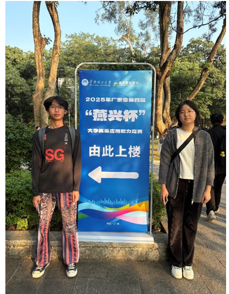 2025年广东省第四届“燕兴杯”大学英语应用能力竞赛(复赛与决赛)于12月6日-7日在华南理工大学(五山校区)圆满落幕。我校工程物理学院光电信息科学与工程的李柯涌同学和新材料与新能源学院材料科学与工程专业的何彰清芬同学以优异的成绩斩获两个二等奖以及各项单项奖!